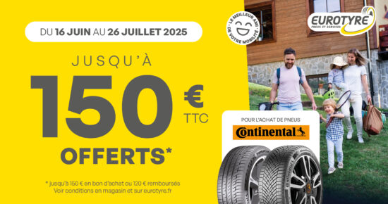 Les réductions et promotions proposées par Eurotyre et le manufacturiers favorisent l’accessibilité aux plus grandes marques de pneus : Continental, Pirelli ou encore Michelin. Ces marques de prestige bénéficient d’un savoir-faire exceptionnel, ne passez pas à côté !